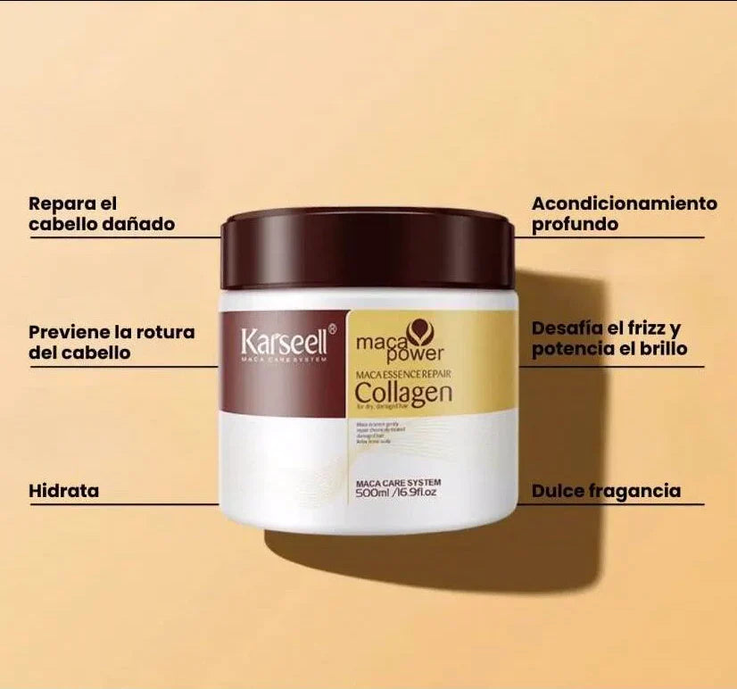 Esta mascarilla capilar con colágeno está diseñada para reparar y revitalizar el cabello dañado, seco o sin vida desde la primera aplicación. Aporta una hidratación profunda que deja el cabello más suave, brillante y manejable sin apelmazar. Ayuda a reducir el encrespamiento, controla el frizz y mejora visiblemente la textura del cabello, aportando un acabado sedoso y profesional. Gracias a su fórmula enriquecida con colágeno y activos nutritivos, fortalece la fibra capilar, mejora la elasticidad y reduce la rotura, dejando el cabello con un aspecto más sano y cuidado. Es apta para todo tipo de cabello, incluidos los teñidos o tratados químicamente, y ofrece resultados visibles desde el primer uso.